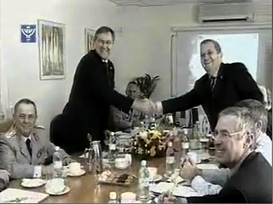 Ehud Barak and Franz Josef Jung Israeli and German defence ministers.