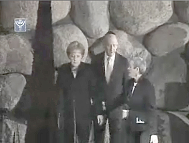 PM Olmert and Chancellor Markel in the ‘Hall of Remembrance’ at Yad Vashem in Jerusalem.