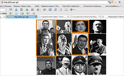 An image from the Web site of the Georgian Parliament after it had been defaced showing Georgian President Mikheil Saakashvili together with leaders of the Nazi regime
