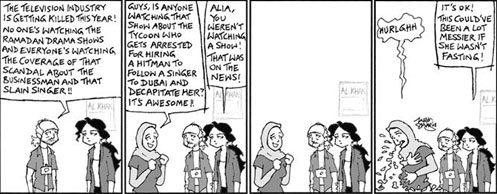 ….”Through his fictional newspaper, Al Khan, and his personal blog, Cairo Freeze , Egyptian cartoonist Tarek Shahin offers a clever take on life, politics and social taboos in modern-day Egypt. MENASSAT spoke with the young cartoonist about challenging the clichés about Egypt, and telling Egypt’s story to the world at large.”, see here on MENASSAT…..