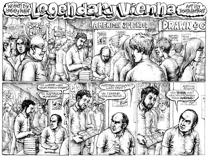 He…”.. was incapable of “drawing a straight line”, according to a line in the film version of his story, he recruited his friend, underground comics artist Robert Crumb, to help create a comics series. Besides Crumb, other notable American Splendor illustrators include Alison Bechdel, Brian Bram, Chester Brown, Alan Moore, David Collier, Gary Dumm, Frank Stack, Drew Friedman, Dean Haspiel, Val Mayerik, Josh Neufeld, Spain Rodriguez, Joe Sacco, Gerry Shamray, Jim Woodring, Joe Zabel, Ed Piskor, and Greg Budgett. More recent issues have employed a new crop of artists, including Ty Templeton, Richard Corben, Hunt Emerson, Eddie Campbell, Gilbert Hernandez, Ho Che Anderson, and Rick Geary.” from the blog of Sid Harth .