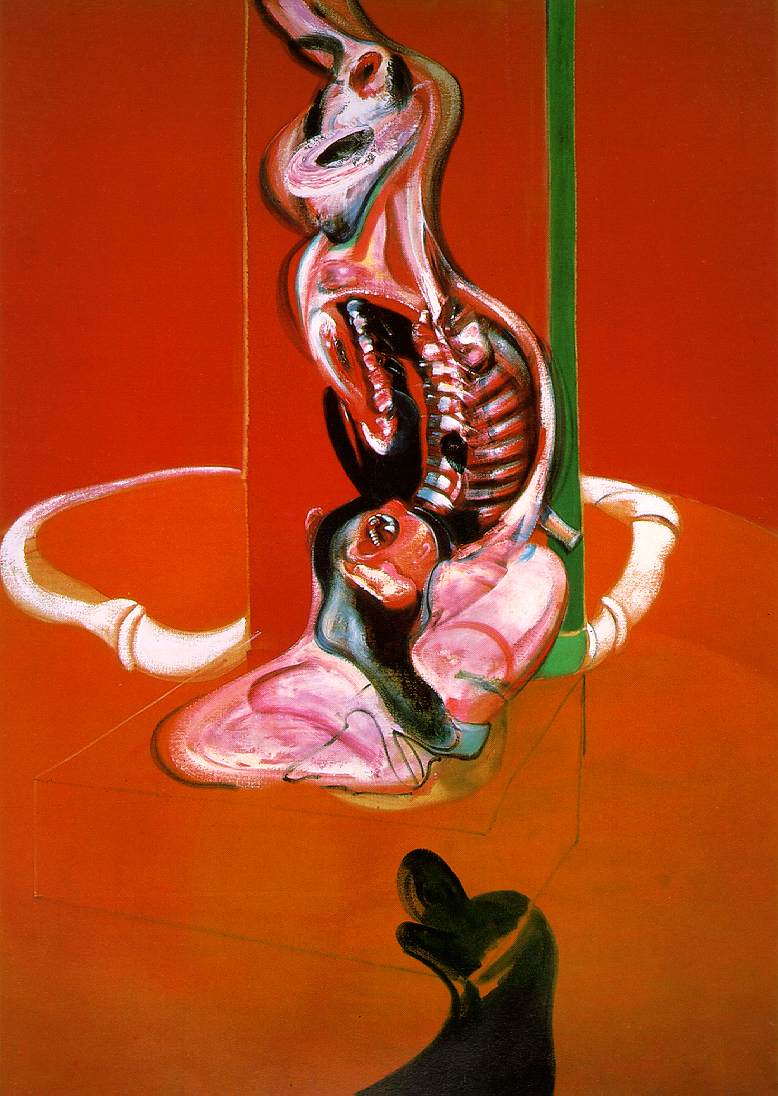 great painters painted Crucifixions, Entombments and Resurrections. See Grunewald’s altarpiece, left. Or in our modern time Francis Bacon’s modern crucifixion, right.