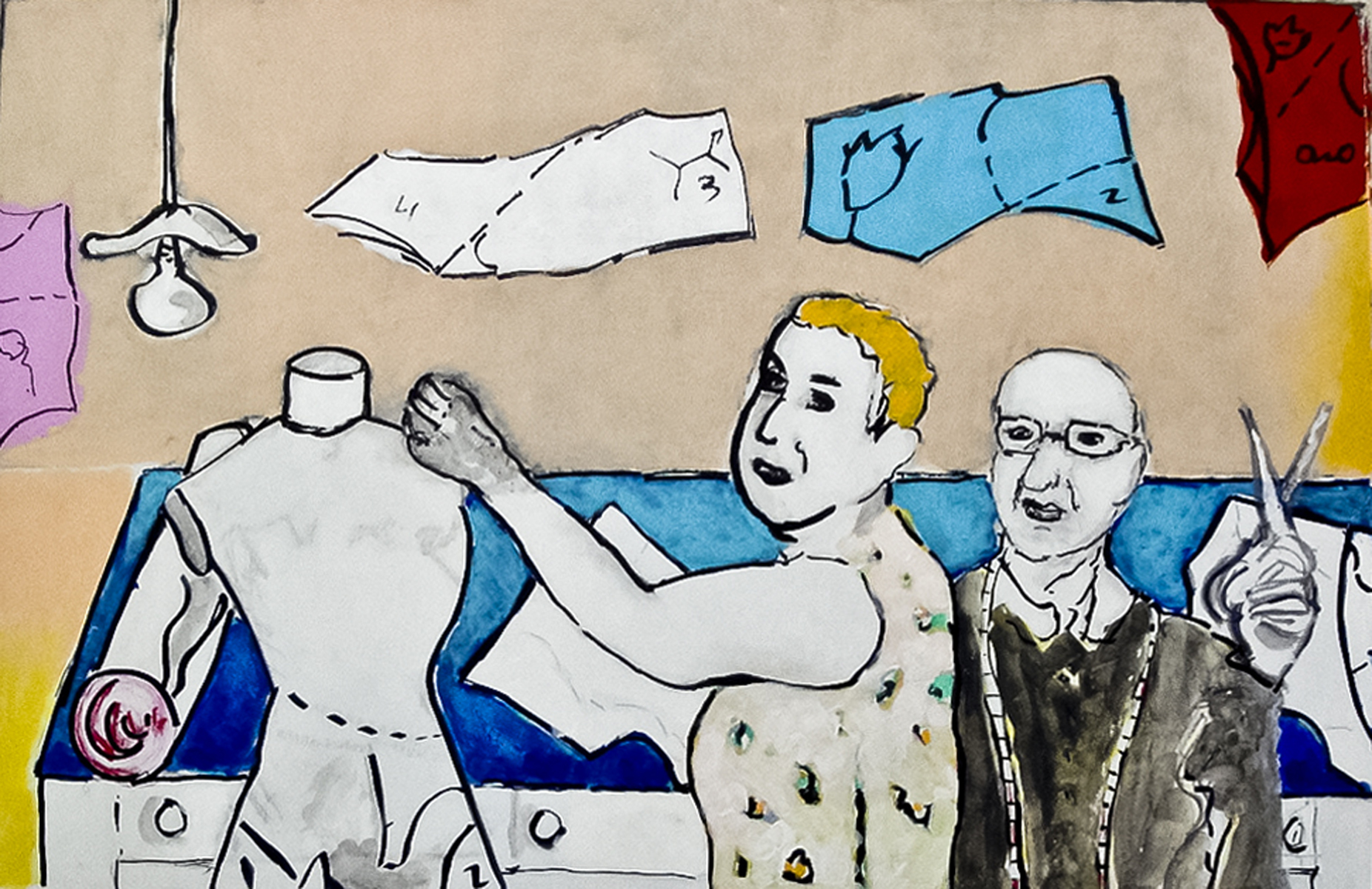 The pictures show my father mother and myself, who survived the holocaust, transferred to Zdunska Wola of WW2, working as tailors.