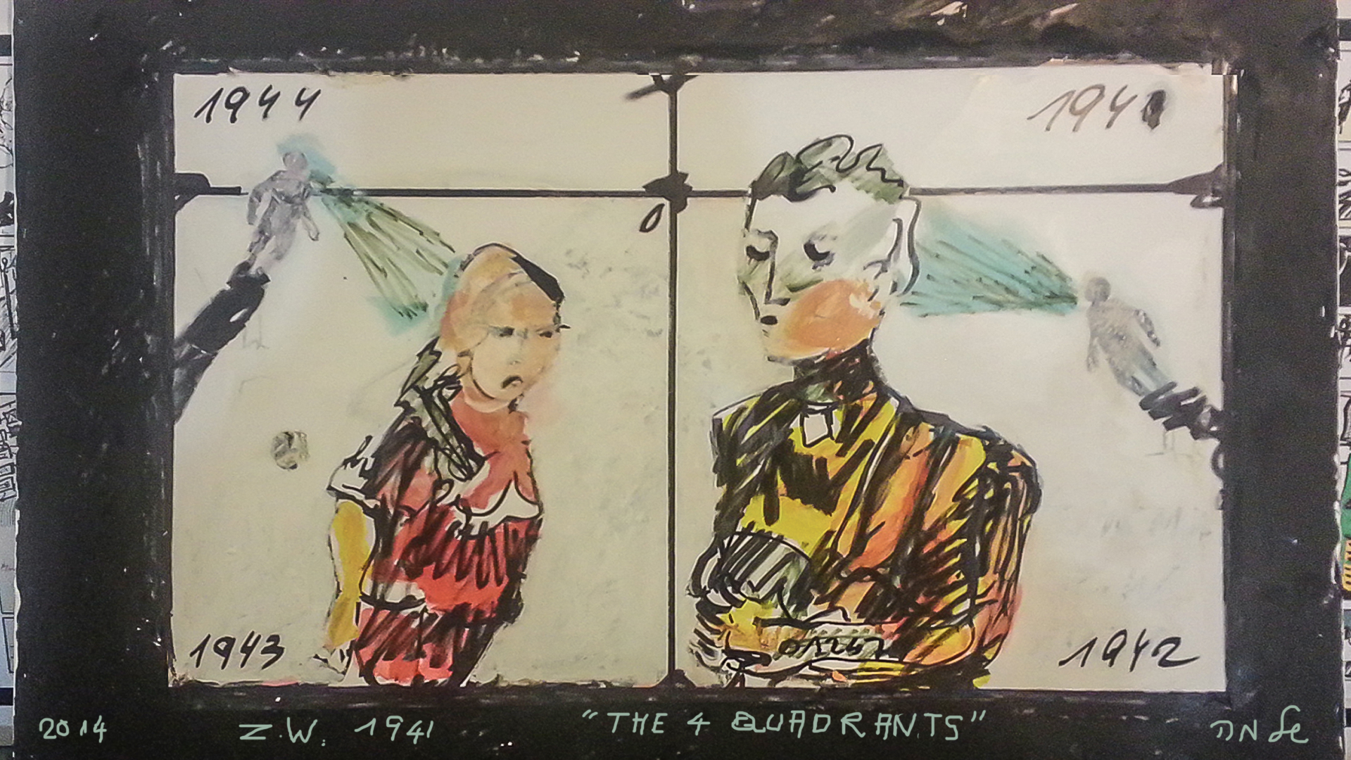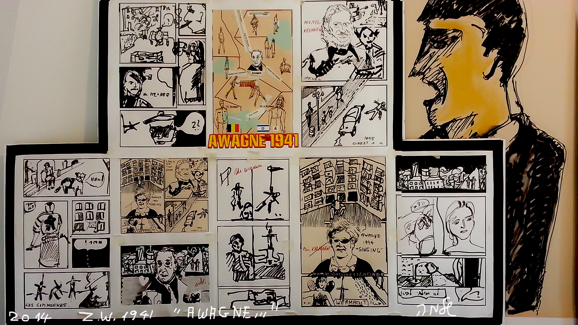 My works in this exhibition are not meticulous drawings, on the contrary thy where created in moments of pressure of the events in 1941, but, by a person who lives in 2014 and remembers his own fears as a child hidden from the Nazis for four years in Belgium (1940-1944).