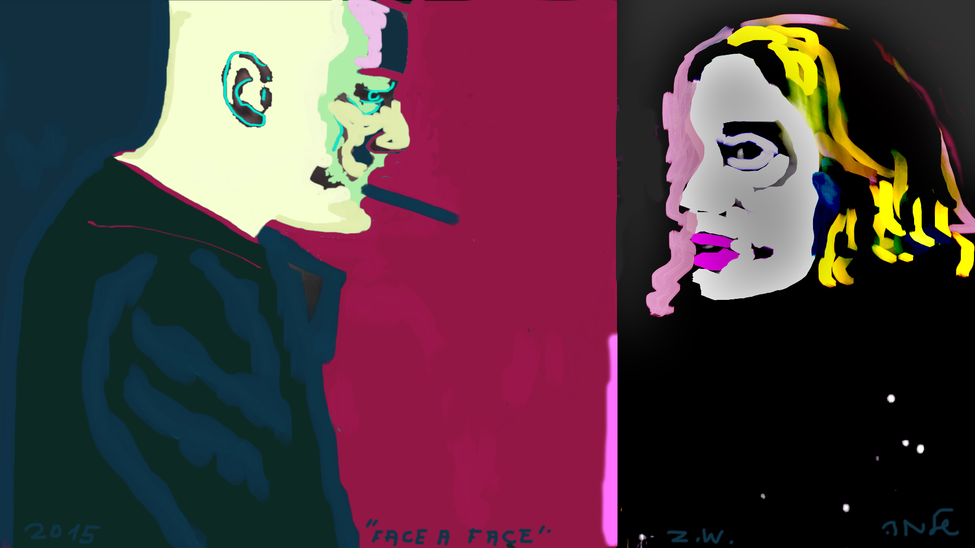 I am a visual artist. A large part of the subject of my paintings and drawings, are people. They are not “copies” of the real people, (the global reality). I’m using the format of comics that came to me directly and releases me from the need to be close to this global reality. I prefer to create my own local “reality”.