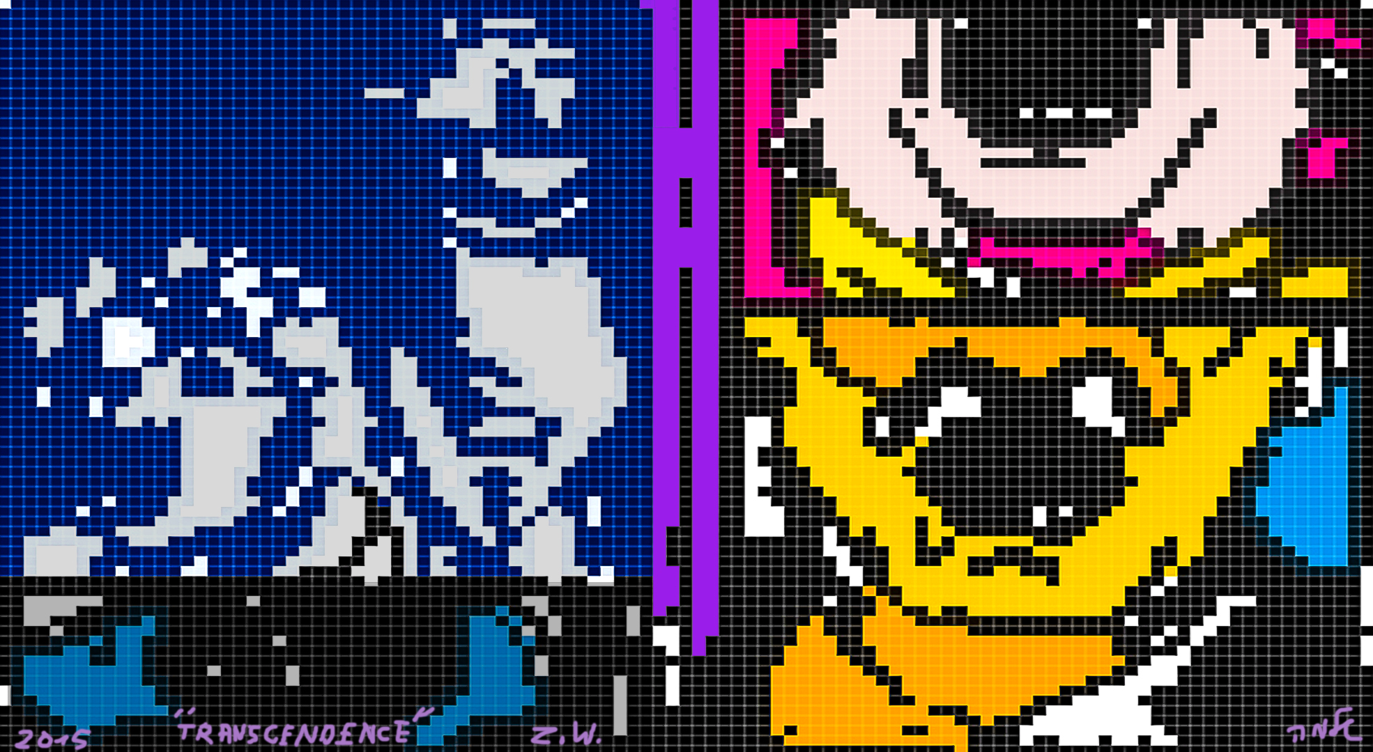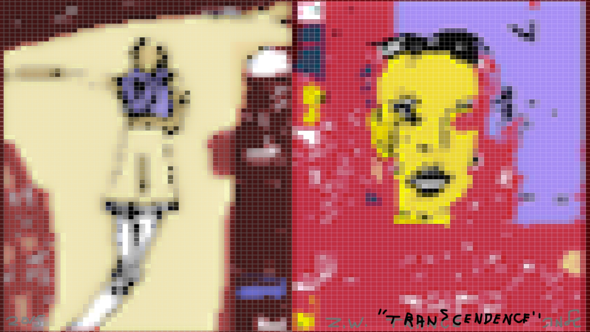 Anyway, the convergence of many different aspects into a visual work is an intriguing affair, in particular the pixel as a crazy visualization of transcendence and absence.